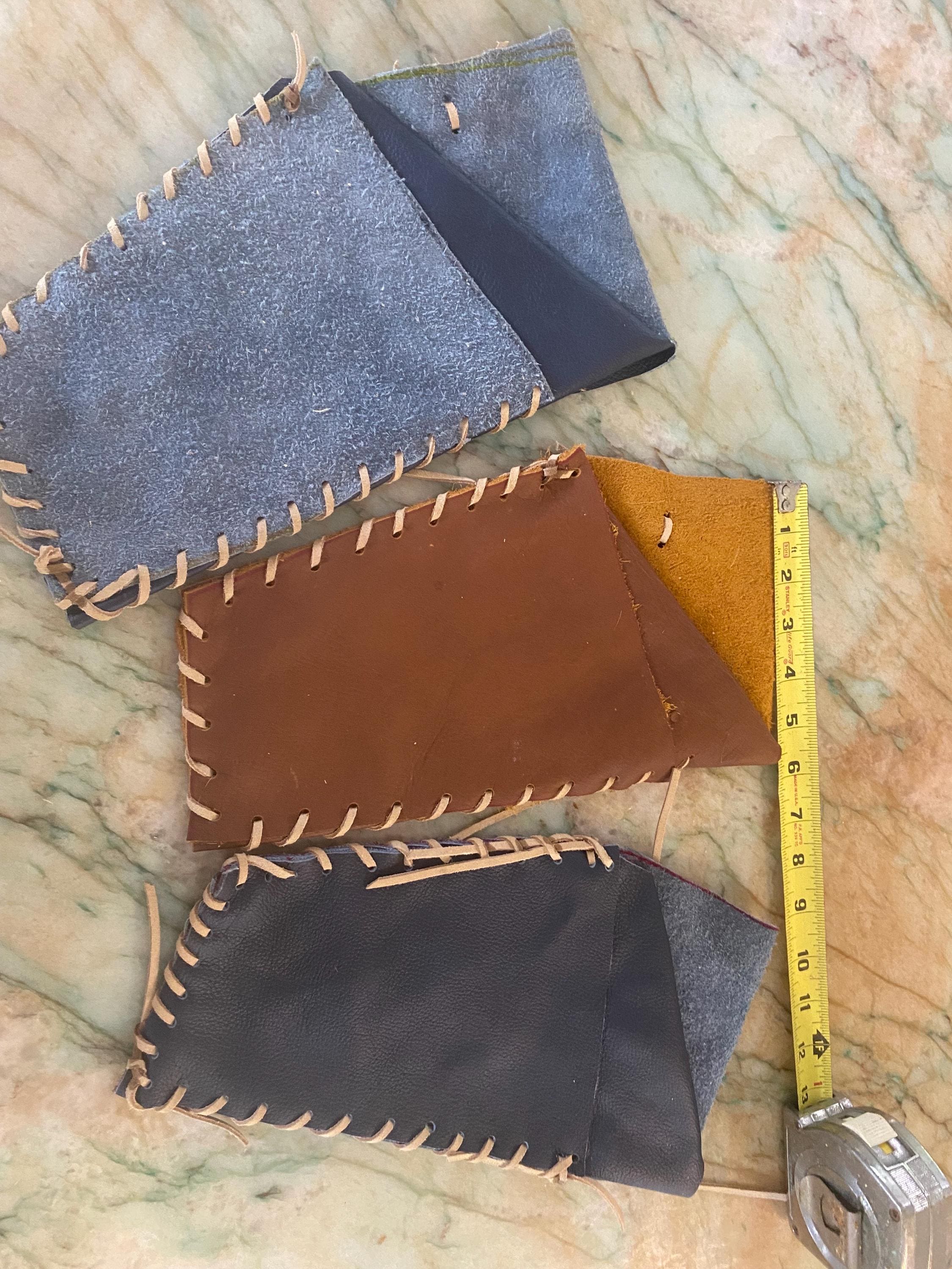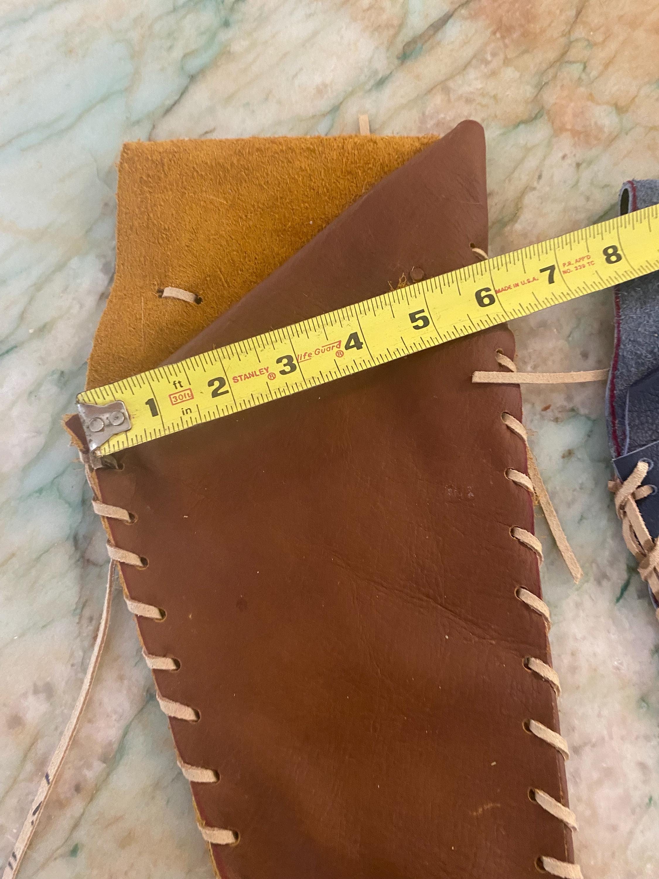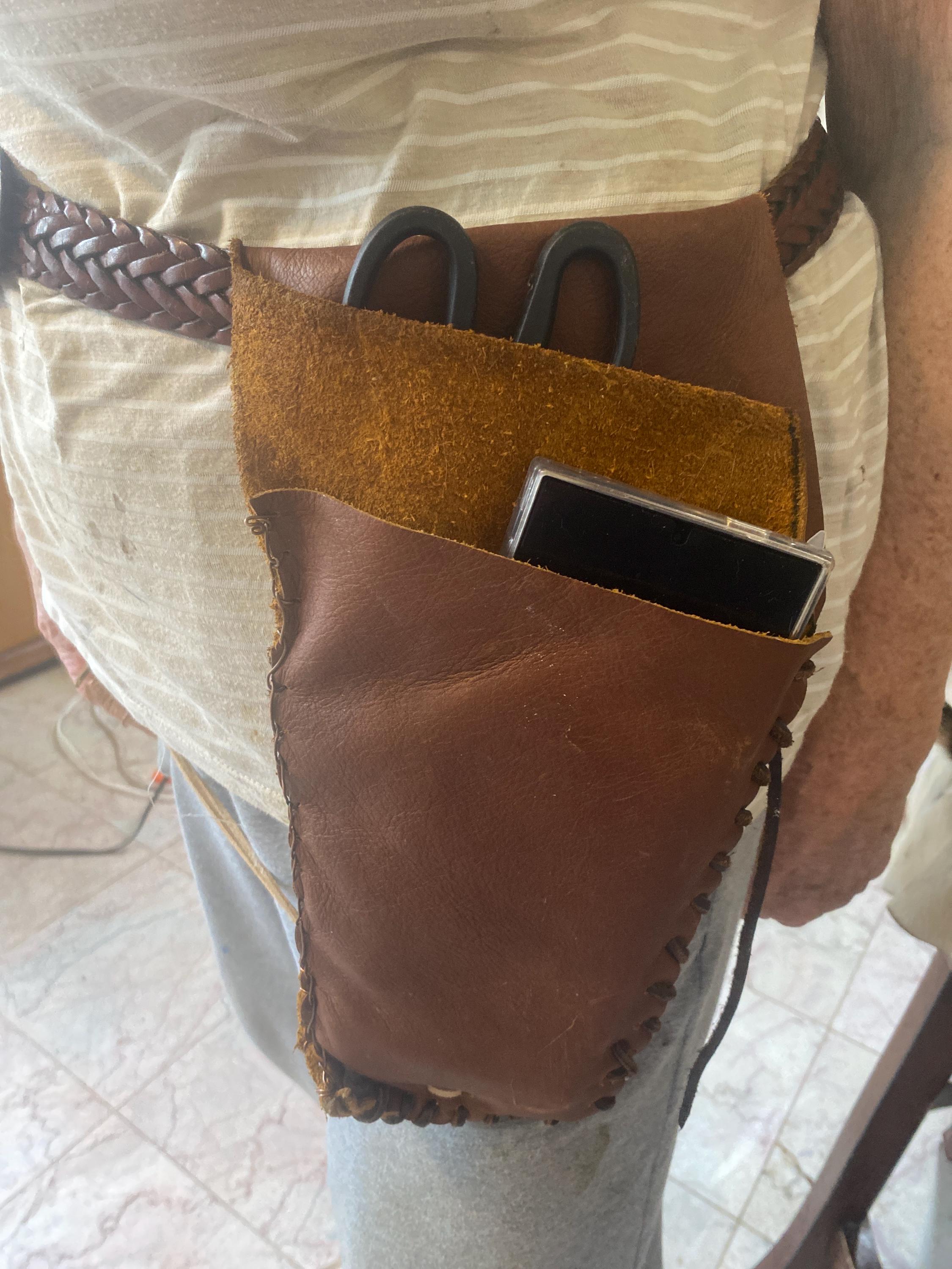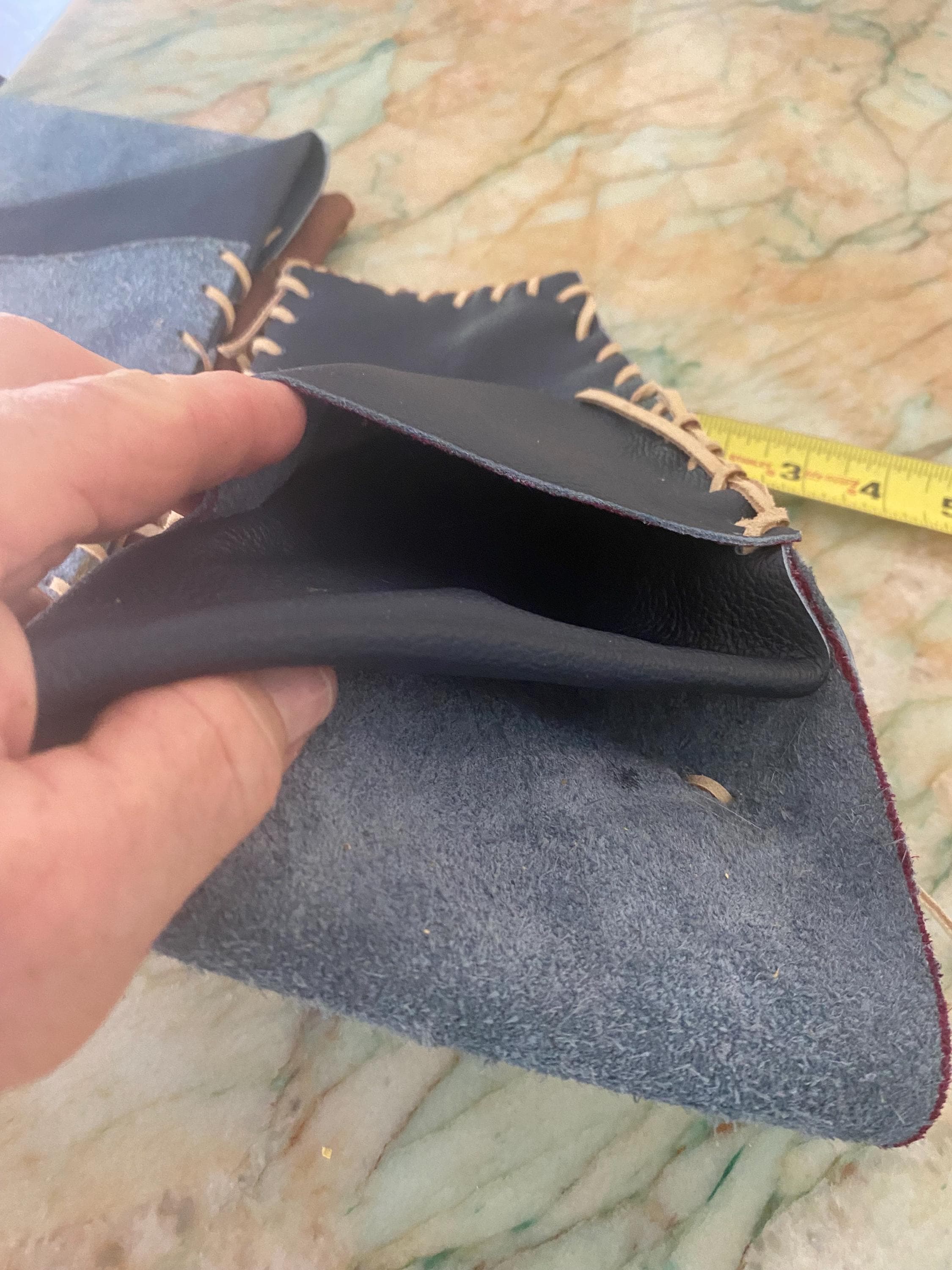 Perfect for cosplay, rennfaires, comic cons, everyday leather fashion, gardening, construction work, and more, these cowhide leather phone holders are made for attaching to your belt. Available colors are blue and brown and are made to order. They are stitch fabricated with beige leather lace and have two pocket compartments to hold your cell phone and other tools such as pocket watches, gardening tools, construction tools, and automotive tools.